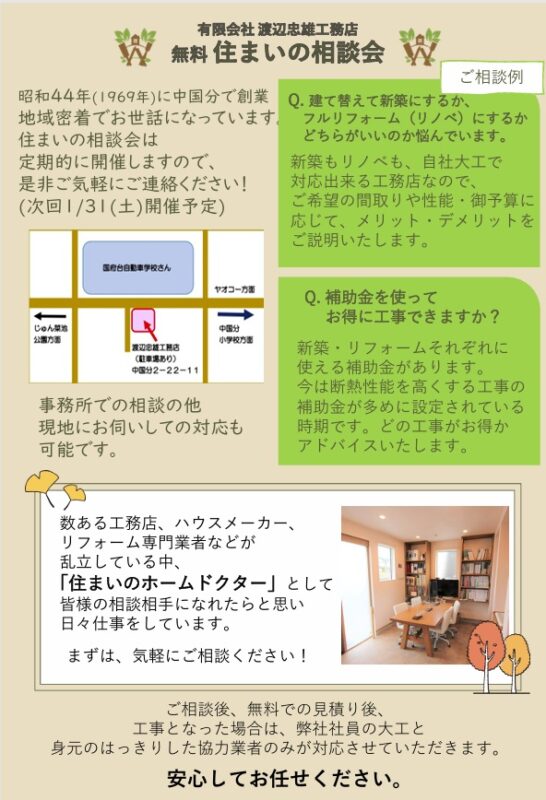 住まいに関わるあれこれを、まずは気軽に相談してみて下さい。