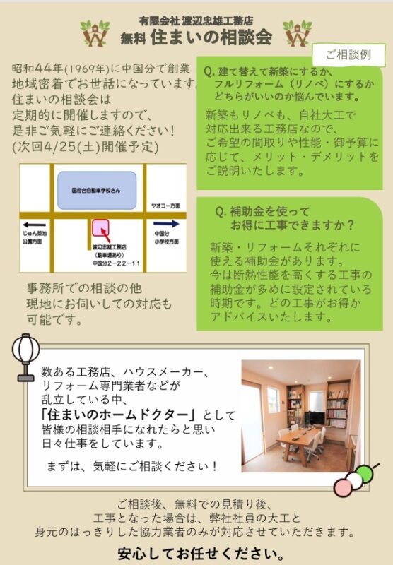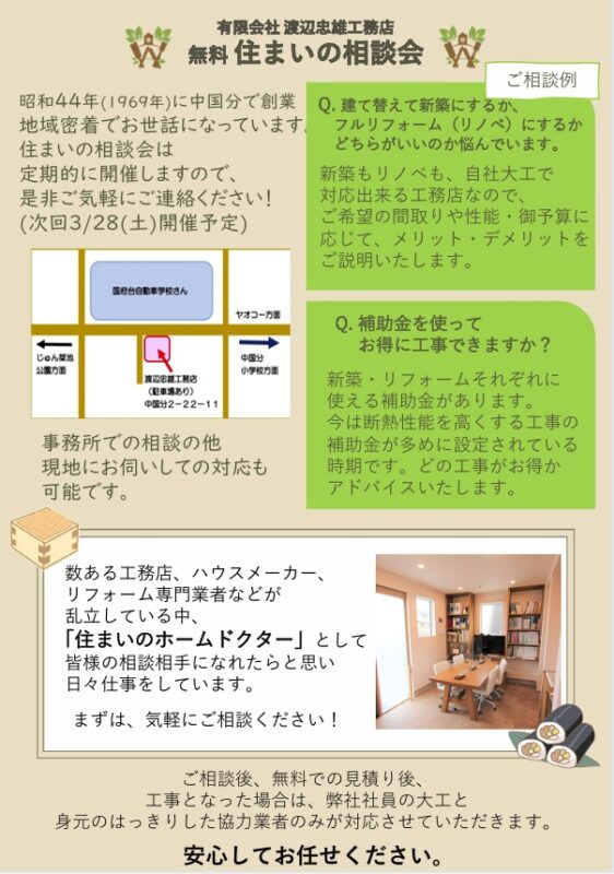 住まいに関わるあれこれを、まずは気軽に相談してみて下さい。
