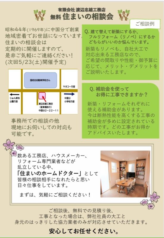 住まいに関わるあれこれを、まずは気軽に相談してみて下さい。